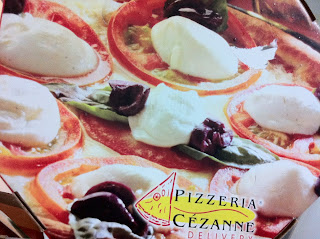 Sempre que pedimos delivery,  uma das nossas opções é a pizzaria Cezanne que conta com várias lojas em SP. Até onde eu sei, há filiais em Perdizes, Santana, Paraíso, Tatuapé, Ipiranga, Saúde e São Caetano do Sul. Já foram eleitos como a melhor pizza de São Paulo em 2010 e realmente é boa. Nosso pedido predileto é meia Autêntica e meia Original com borda de catupiry (pizza da foto).  A autêntica é feita de molho de tomate, muzzarela de búfala, parmesão ralado, manjericão, orégano e azeitonas pretas e a Original é de molho de tomate, muzzarela de búfala com manjericão e calabresa curada.